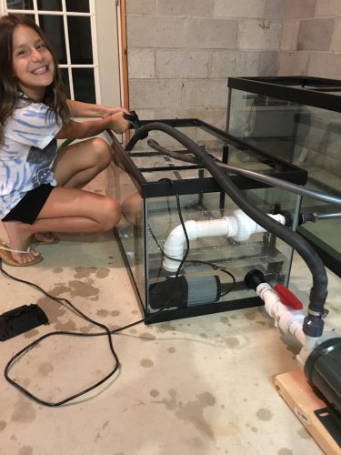 Sump was drilled for two 1" bulkheads. One is the external return pump (Iwaki RLT75) and the other is for the internal manifold pump (DCT 8000)